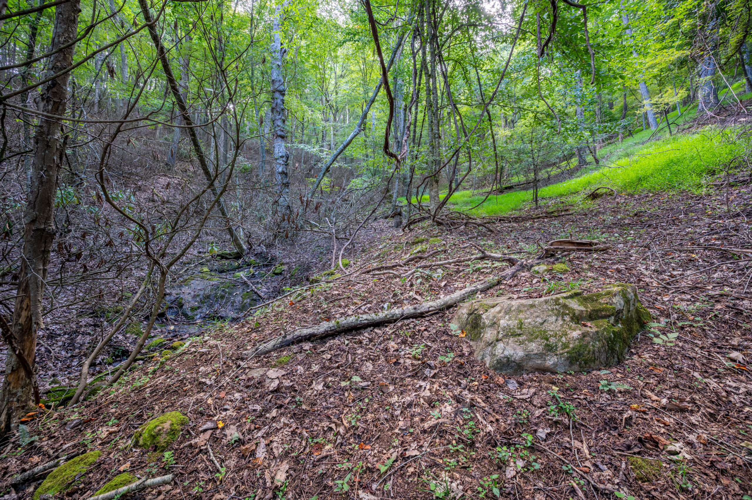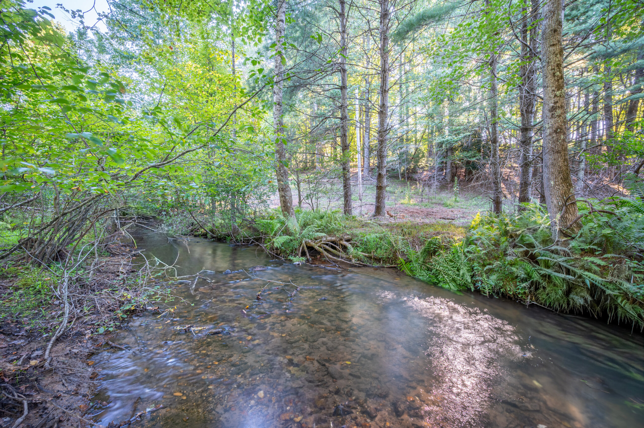 Natural Features: Mature hardwoods, a peaceful stream, and a small bridge
